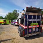 Doch genau darin liegt unsere Stärke, wir lösen die Problem wenn wir sie Antreffen mit den Mitteln die vorhanden sind. Und meist ist die Situation nicht so schlimm wie man es sich im ersten Moment vorstellt. So war das Pferd beim Eintreffen schon wieder befreit und wurde von uns bis zum Eintreffen des Tierarzt und der Grosstierabulanz betreut.