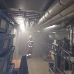 Da keine weitere Gefahr vom Kompressor aus kam mussten jetzt die Lüfter so positioniert werden, dass der Rauch aus dem Raum ins freie gelangen konnte. Dies war dank einem guten Lüftungskonzept in kürzer erledigt und wir konnten zur Retablierung zurück ins Depot.
