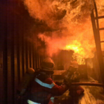 Die Übungen wurden in zwei Teile aufgeteilt. Im unteren Bereich wurde mit Gas und Holz eingeheizt und so die verschiedenen Feuertypen trainiert. Dabei ist immer wieder spannend zu erfahren, wie sich die Feuer verhalten, wie sie bekämpft werden können und wo die Grenzen liegen. Da jeder Brand individuell ist und daher immer situativ gehandelt werden muss, ist es um so wichtiger, dass wir die Feuer und ihre Verhaltensweise kennen und verstehen.