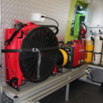 Weiter ist der Personentransporter Atemschutz ausgelegt, dass ein Reinigungsmodul oder ein anderer Modulwagen eingeladen werden kann. Dazu befindet sich im hinteren Teil eine Seilwinde sowie zwei faltbare, einhängbare Verladeschienen.
